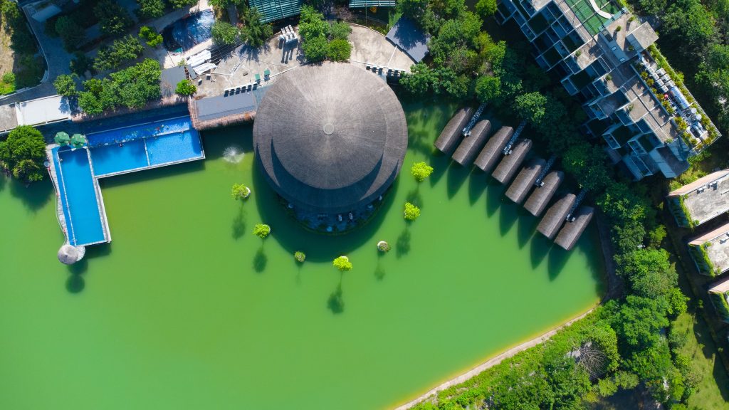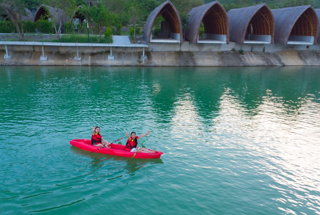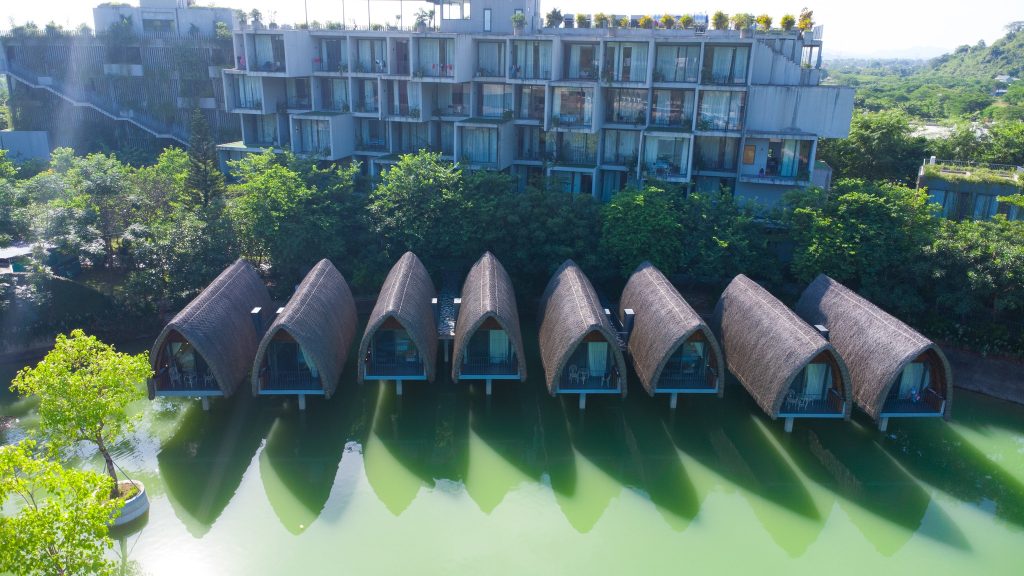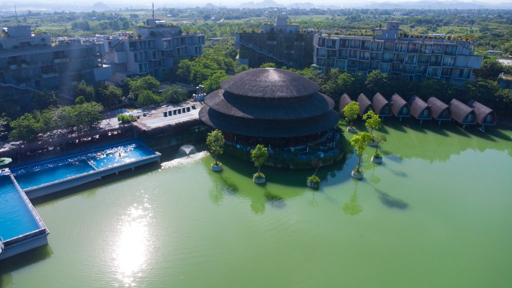 Ẩn mình tại một không gian xanh trải dài của những dãy núi đá vôi trùng điệp, xen kẽ những khu vườn xinh xắn tạo nên không gian yên tĩnh và lãng mạn. Nơi đây như một chốn nghỉ dưỡng nép mình bên hồ với lối kiến trúc độc đáo đậm đà bản sắc văn hóa; với tổ hợp công trình làm từ vật liệu tre nứa tự nhiên đan xen với lối xây dựng hiện đại sang trọng. Vẻ đẹp từ những biệt thự, bungalow hay condotels sẽ đưa bạn vào không gian tách biệt của cố đô cổ kính; dành cả ngày dài để dạo bước trên con đường xuyên hồ cỏ xanh rì hay mơ màng bên hoàng hôn ẩn hiện khói núi.
